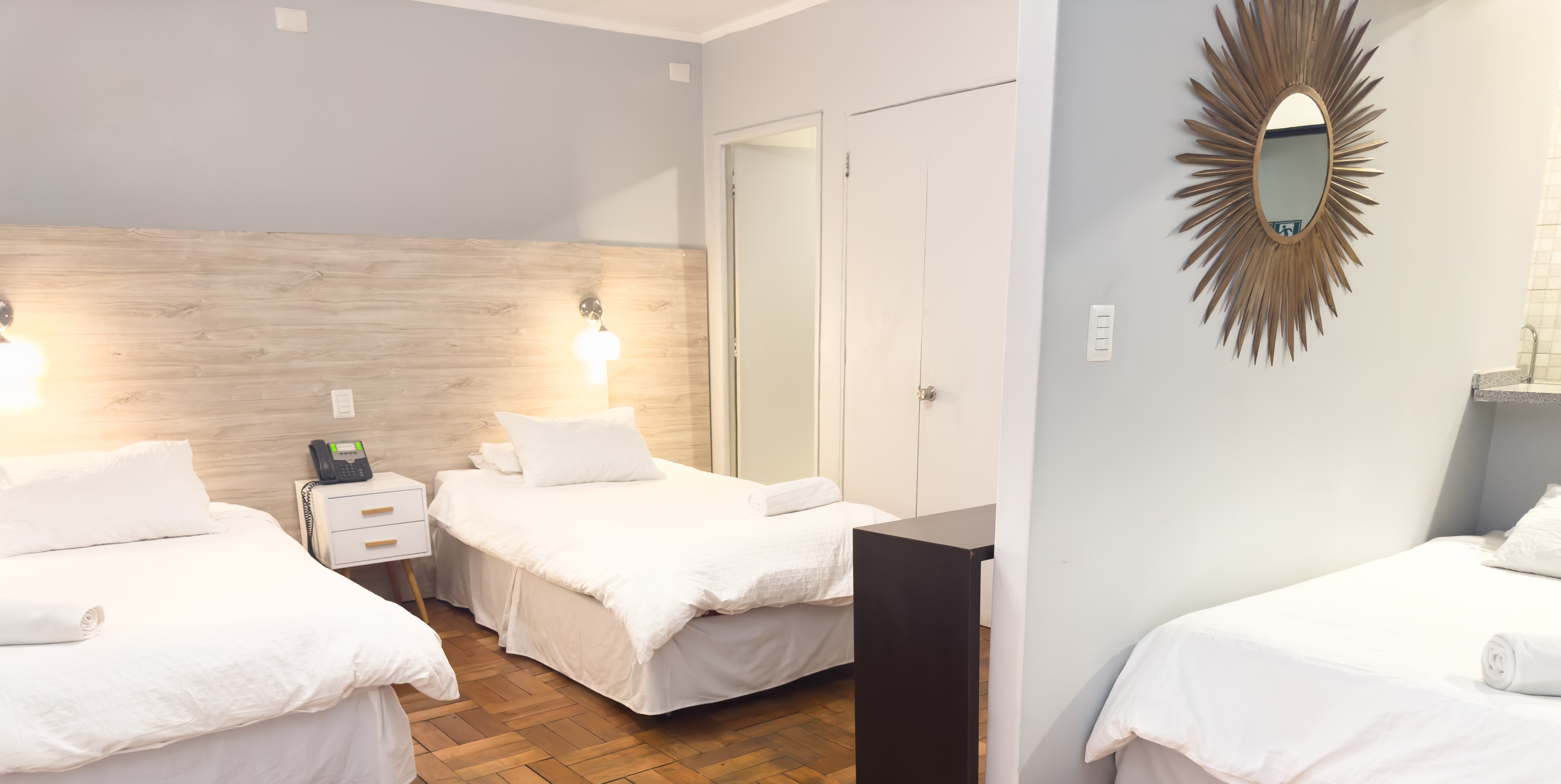 La habitación single de nuestro Hotel, está equipada con una cama de plaza y media (individual) WiFi, teléfono, calefacción, caja fuerte y clóset. Baño privado con agua caliente. Están ubicadas en todos los pisos del hotel.